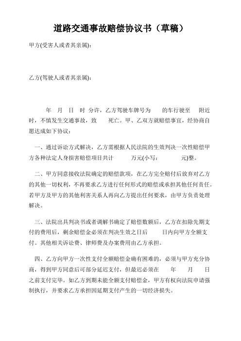 道路交通事故赔偿协议书 Docx 沃文网wodocx Com