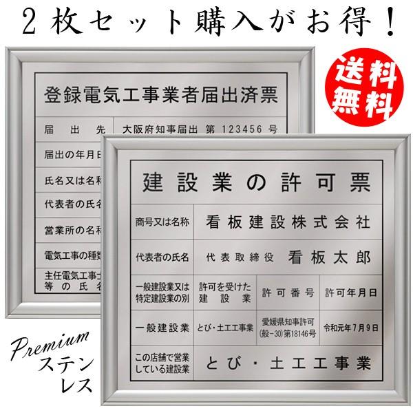 建設業許可票 登録電気工事業者届出済票ステンレス Sus304 製プレミアムシルバーセット 法定看板 標識 表示看板 建設業の許可票 建設業許可票 Hou Denkiset Sr しるし堂 通販 Yahoo ショッピング