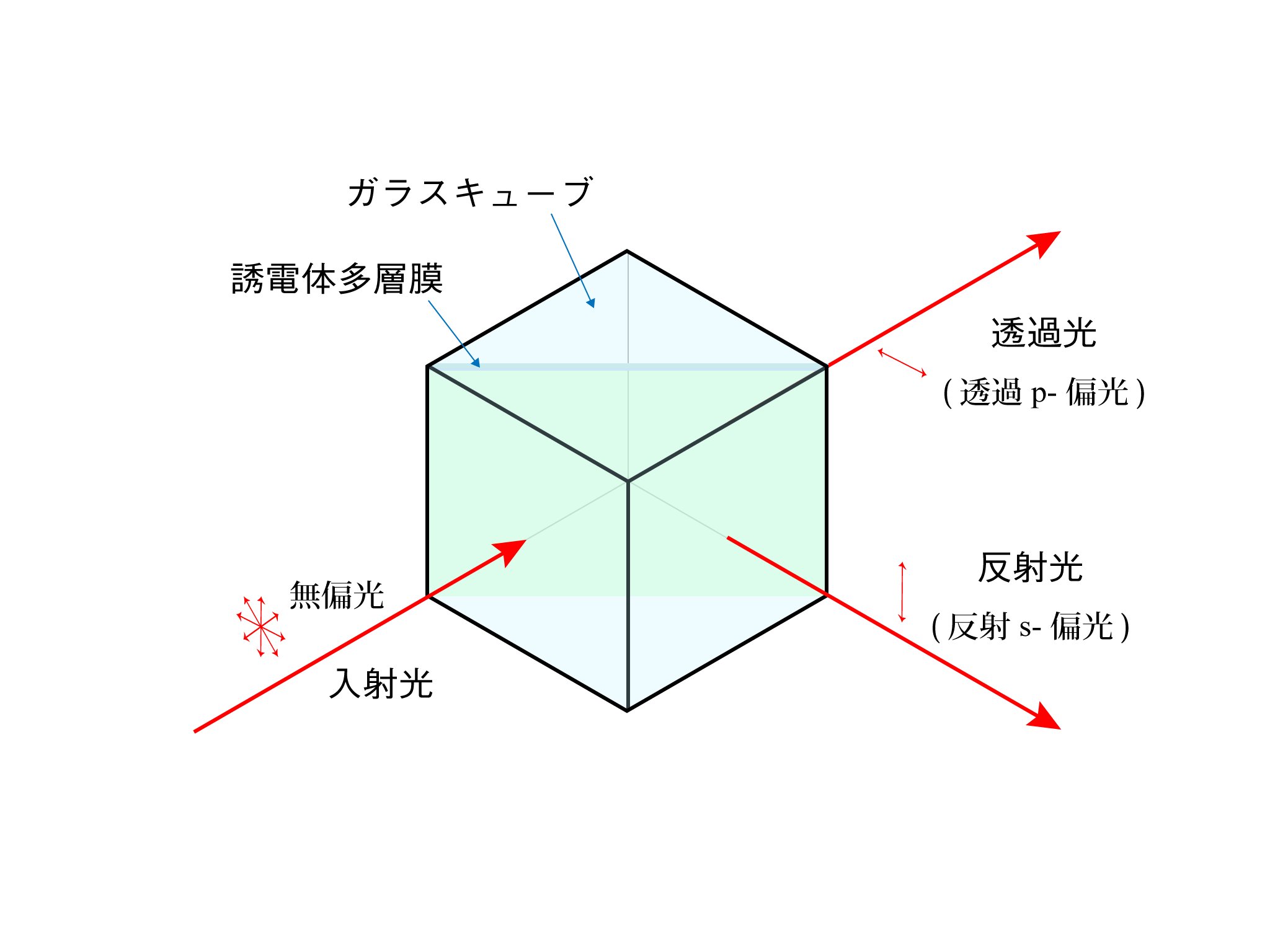 ヒサン 電子材料 デバイスbot A Twitter 偏光ビームスプリッタ 誘電体多層膜を利用した偏光子 多層膜に対し45 に入射する光の偏光成分のうちs 偏光に対しては反射率が高いため直角に反射し P 偏光に対しては反射率が低いため透過することにより2方向の直線偏光に