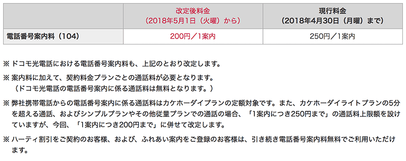 ドコモからのお知らせ 電話番号案内料 104 の改定について お知らせ Nttドコモ